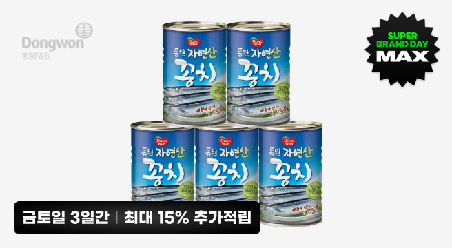 동원(최대15%적립) 동원에프앤비 꽁치 300g 5캔스타배송12/15(월) 도착보장원가30,000원할인율39%18,200원무료배송구매 66,080