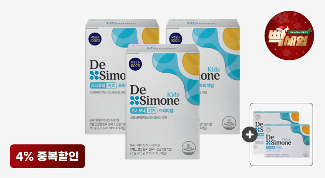드시모네키즈 프리미엄 3박스(3개월분) + 프라임 10일분 추가증정스타배송내일(토) 도착보장원가294,000원할인율15%249,900원무료배송구매 3,124