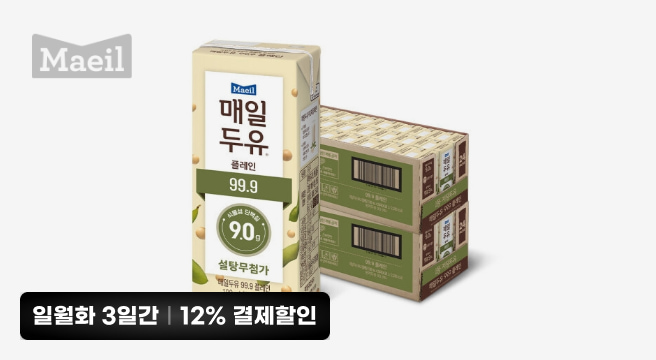 매일유업(12% 결제할인) 매일두유 99.9 190ml 48팩스타배송내일(화) 도착보장원가36,890원할인율12%32,100원무료배송구매 3만